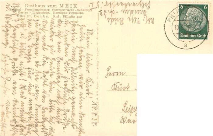 73899412 alte Postkarte Pillnitz Dresden Gasthaus zum Meix postalisch gelaufen Erhaltung siehe scans [WerneD78] KatCode: 11110014262000