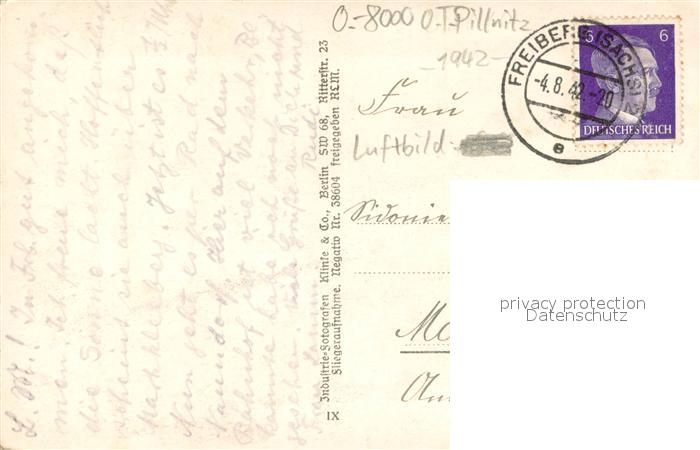 73697913 alte Postkarte Pillnitz Fliegeraufnahme Schloss Pillnitz an der Elbe postalisch gelaufen Erhaltung siehe scans [LiesaD40] KatCode: 11110014262000