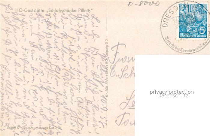 43351160 alte Postkarte Pillnitz HO Gaststaette Schlosschaenke Pillnitz postalisch gelaufen Erhaltung siehe scans [KathaD81] KatCode: 11110014262000