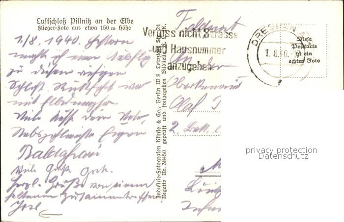 71602416 alte Postkarte Pillnitz Lustschloss Elbe Fliegeraufnahme postalisch gelaufen KatCode: 11110014262000