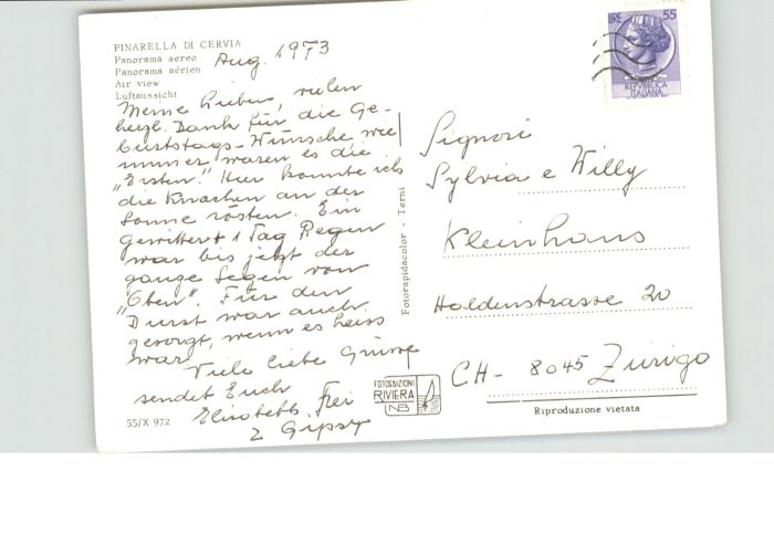 old postcard Pinarella di Cervia Fliegeraufnahme postalisch gelaufen