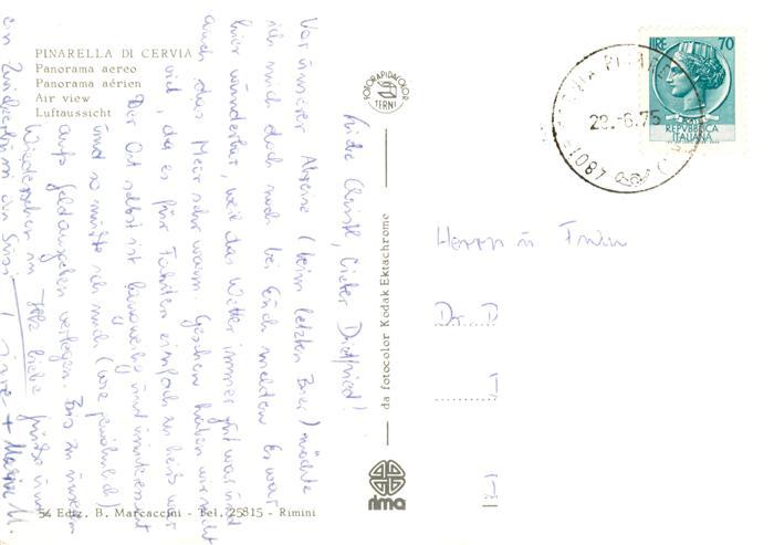 73899162 old postcard Pinarella di Cervia IT Fliegeraufnahme postalisch gelaufen Erhaltung siehe scans [FriedD77] KatCode: 11240