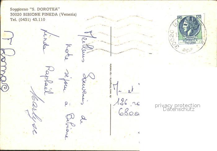 old postcard Pineda Bibione Soggiorno S. Dorotea postalisch gelaufen Erhaltung siehe scans