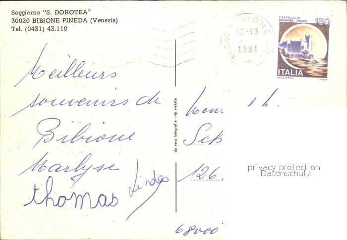 old postcard Pineda Bibione Soggiorno San Dorotea postalisch gelaufen Erhaltung siehe scans