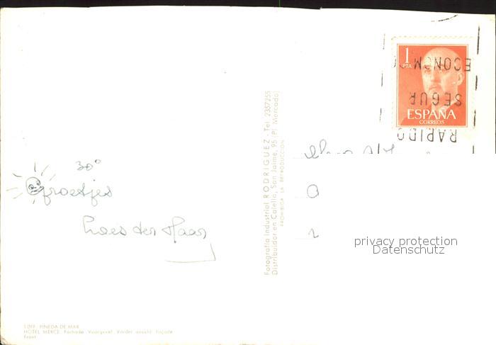 old postcard Pineda de Mar Hotel Merce Front postalisch gelaufen Erhaltung siehe scans