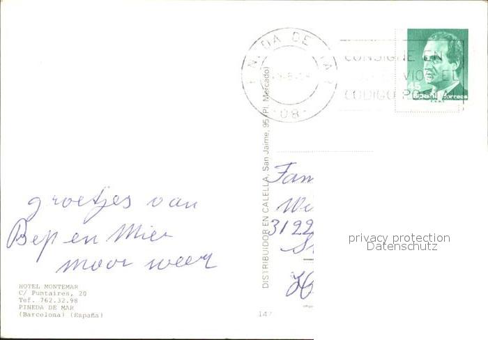 old postcard Pineda de Mar Hotel Montemar Barcelona postalisch gelaufen Erhaltung siehe scans