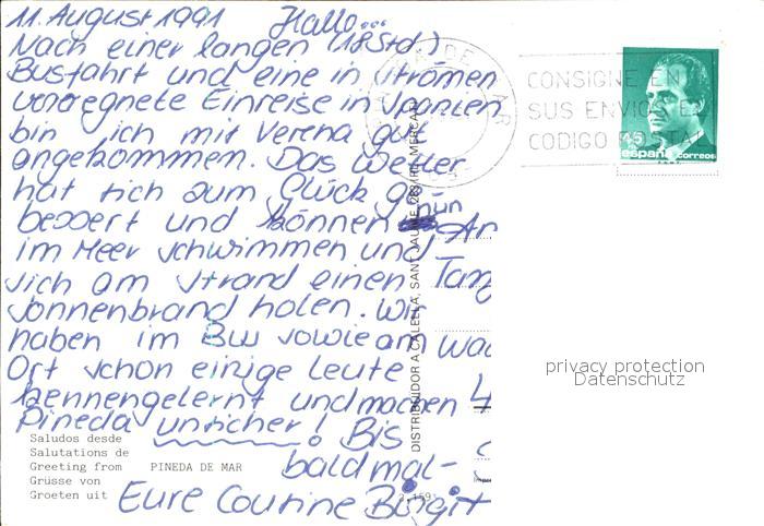old postcard Pineda de Mar Teilansicht Strand Park postalisch gelaufen Erhaltung siehe scans