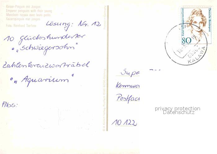alte Postkarte Pinguin Kaiser-Pinguin mit Jungen postalisch gelaufen Erhaltung siehe scans [PaolaD17]