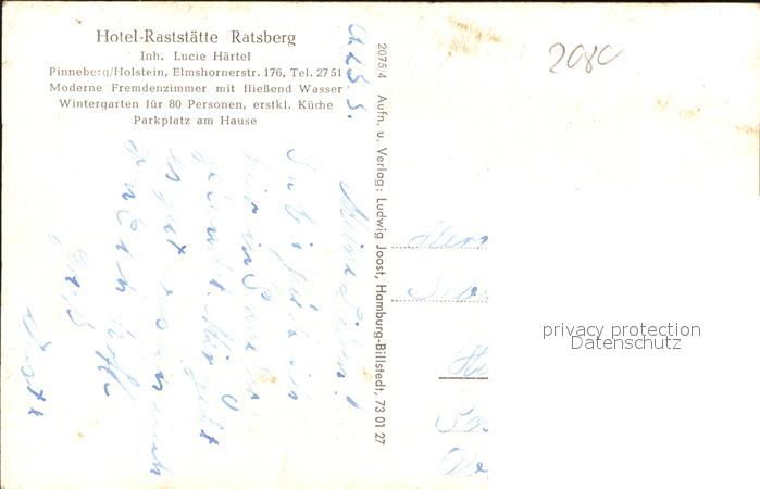 41586726 Pinneberg Hotel Raststaette Ratsberg postalisch nicht gelaufen Erhaltung siehe scans Alte Ansichtskarte Postkarte hz_F Katcode 11110001056039