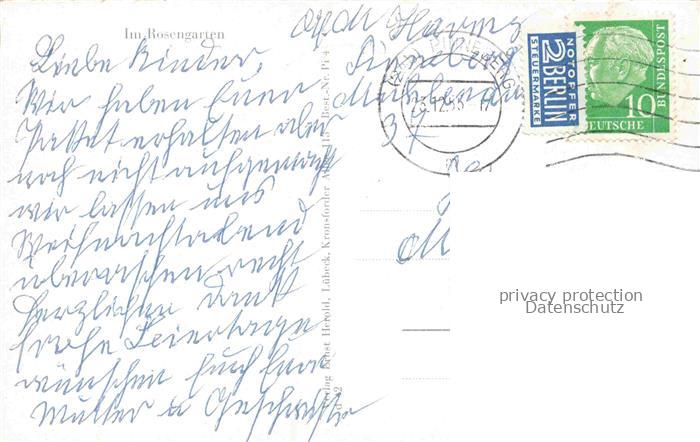 74153368 alte Postkarte Pinneberg Schleswig-Holstein Rosengarten postalisch gelaufen Erhaltung siehe scans [FriedD77] KatCode: 11110001056039