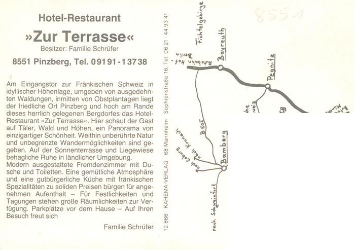 73932239 Pinzberg Hotel Restaurant Zur Terrasse Brunnentrog Panorama postalisch nicht gelaufen Werbekarte (keine Postkarte) Erhaltung siehe scans [WerneD78] KatCode: 11110009474158
