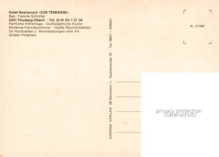 73571493 Pinzberg Hotel Restaurant Zur Terrasse Gastraeume Zimmer postalisch nicht gelaufen Erhaltung siehe scans [WerneD78] KatCode: 11110009474158