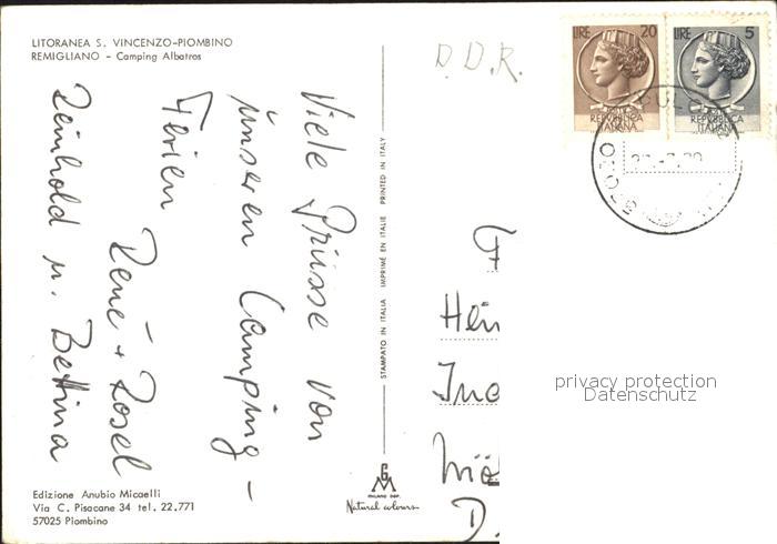 old postcard Piombino Remigliano Camping Albatros postalisch gelaufen Erhaltung siehe scans