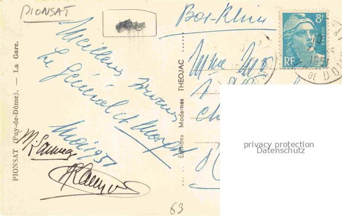 14117320 Pionsat RIOM 63 Puy-de-Dome La Gare postalisch gelaufen Erhaltung siehe scans [FriedD77] carte postale Frie Katcode 11170063463281