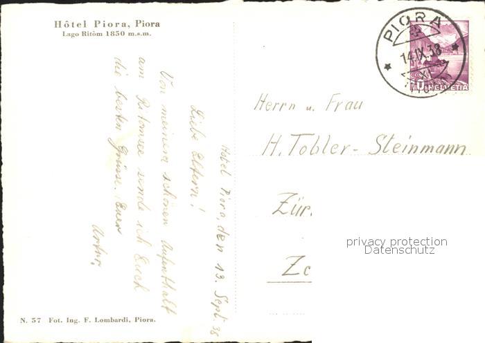 11645482 alte Postkarte Piora Hotel Piora Lago Ritom postalisch gelaufen Erhaltung siehe scans KatCode: 11470210650900