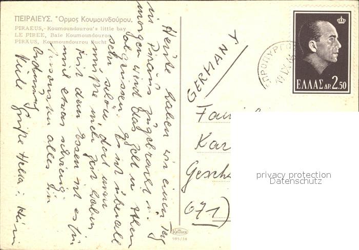 old postcard Piraeus Koumoundourou Bucht Hafen postalisch gelaufen