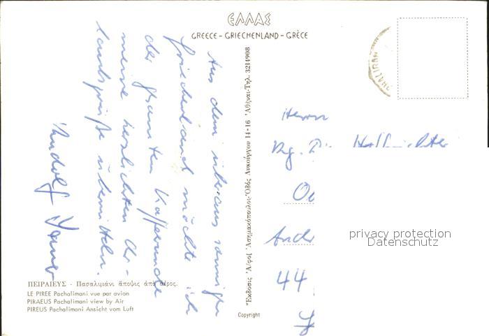 old postcard Piraeus Pachalimani Hafen Fliegeraufnahme postalisch gelaufen Erhaltung siehe scans