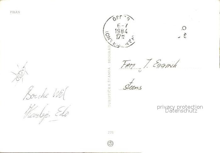 old postcard Piran Partie am Hafen Kirchturm postalisch gelaufen Erhaltung siehe scans