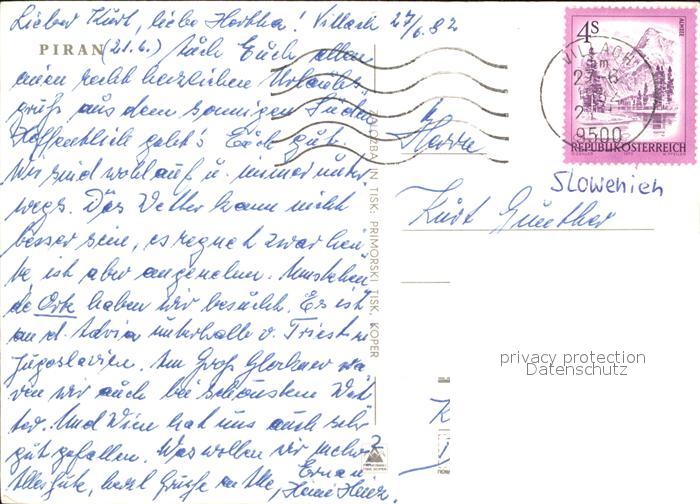 old postcard Piran Portoroz Strunjan Izola Koper postalisch gelaufen Erhaltung siehe scans
