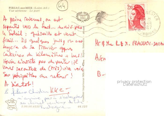 13152143 carte postale Piriac-sur-Mer Fliegeraufnahme Hafen postalisch gelaufen Erhaltung siehe scans [KathaD81] KatCode: 11170044344125