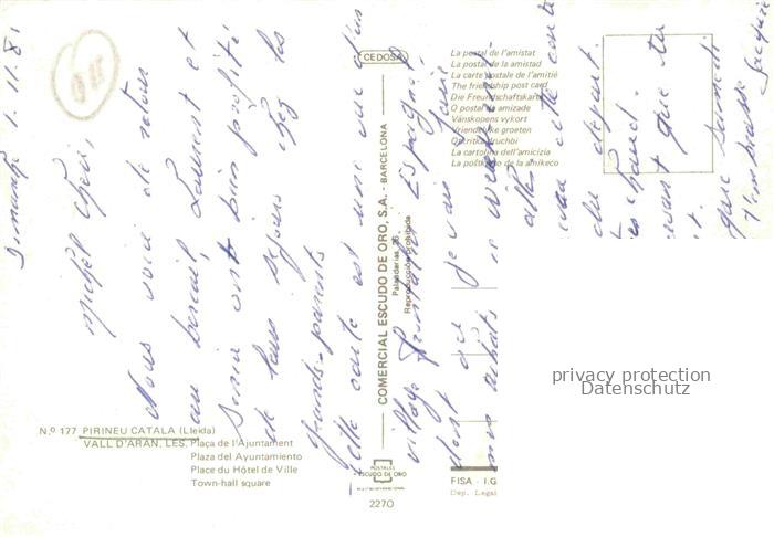 74137764 Pirineu Catala Lleida Cataluna ES Plaza del Ayuntamiento postalisch nicht gelaufen Erhaltung siehe scans [FriedD77] KatCode: 11510