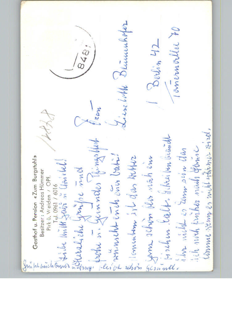 31161594 Pirk Weiden Gasthof und Pension zum Burgstuhl postalisch nicht gelaufen KatCode: 11110009374146