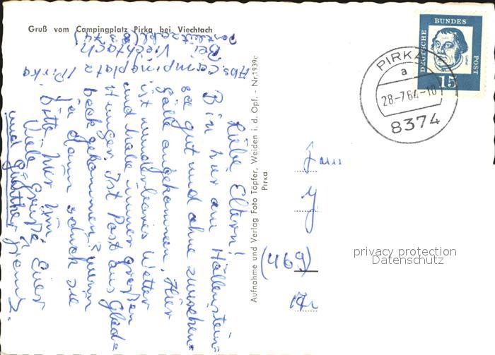 72524232 alte Postkarte Pirka Viechtach Campingplatz postalisch gelaufen Erhaltung siehe scans KatCode: 11110009276144