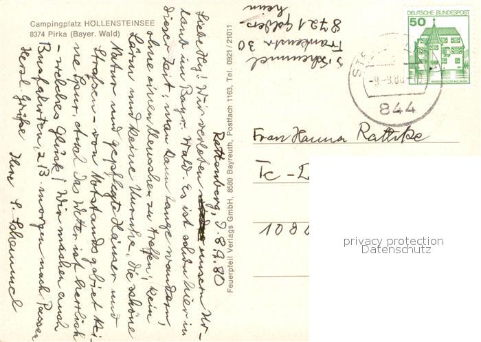 73667175 alte Postkarte Pirka Viechtach Fliegeraufnahme mit Campingplatz Hoellensteinsee postalisch gelaufen Erhaltung siehe scans [WerneD78] KatCode: 11110009276144