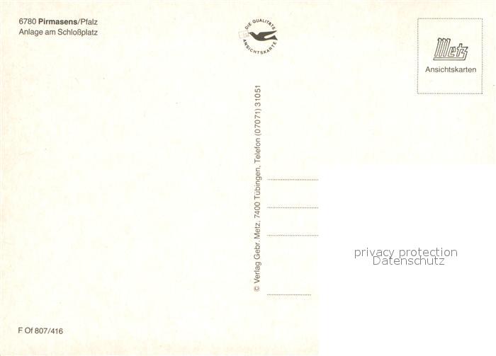 73615561 Pirmasens Anlage am Schlossplatz postalisch nicht gelaufen Erhaltung siehe scans [WerneD78] KatCode: 11110007317000