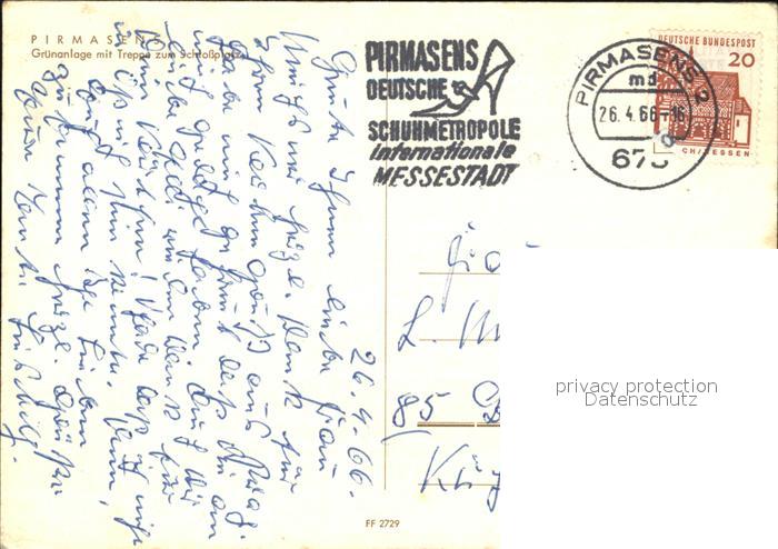 72421474 alte Postkarte Pirmasens Gruenanlage mit Treppe zum Schlossplatz postalisch gelaufen Erhaltung siehe scans KatCode: 11110007317000