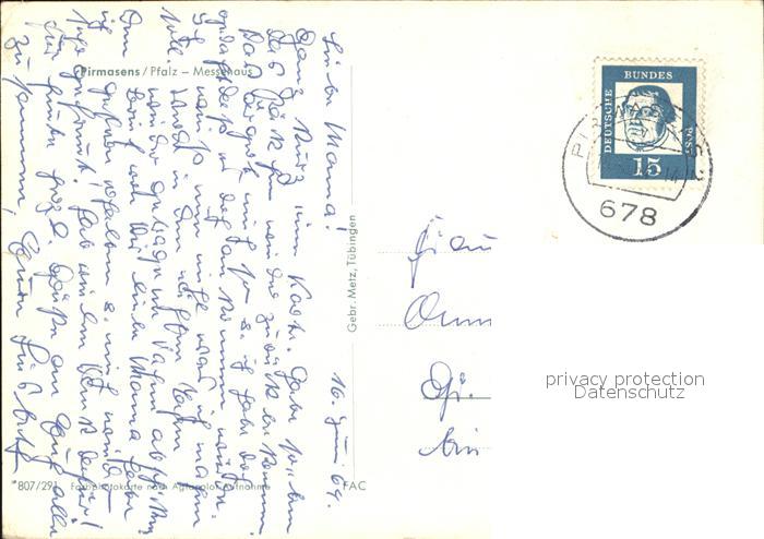 72421475 alte Postkarte Pirmasens Messehaus postalisch gelaufen Erhaltung siehe scans KatCode: 11110007317000