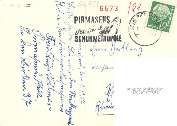 73853483 alte Postkarte Pirmasens Schlossstrasse mit Haus Hans-Sachs-Hof postalisch gelaufen Erhaltung siehe scans [FriedD77] KatCode: 11110007317000