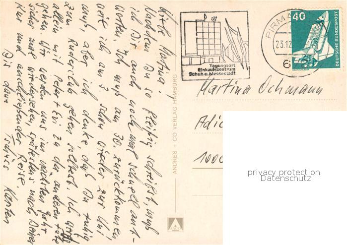 73615565 alte Postkarte Pirmasens Stadtblick Pirminkirche Hauptstrasse postalisch gelaufen Erhaltung siehe scans [WerneD78] KatCode: 11110007317000
