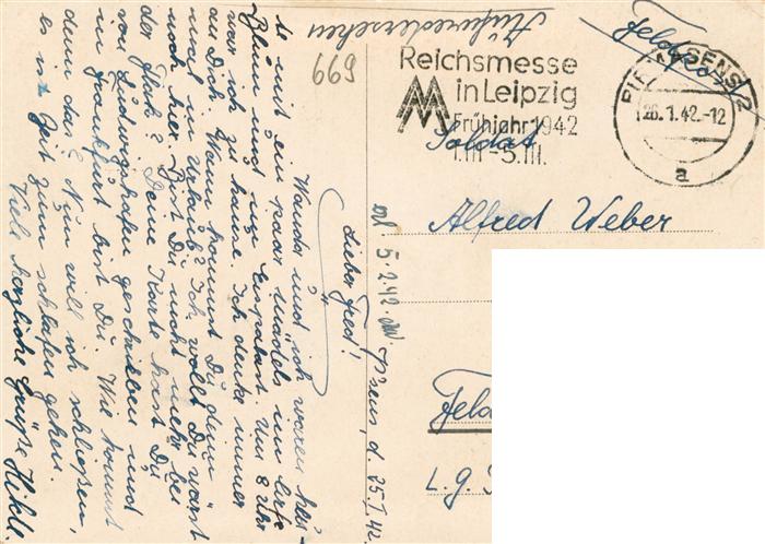 73873733 alte Postkarte Pirmasens Teilansicht mit Kirchen Feldpost postalisch gelaufen Erhaltung siehe scans [FriedD77] KatCode: 11110007317000