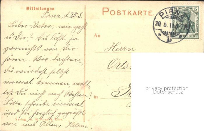 31704690 Pirna Elbe Sachsen Gartenstrasse postalisch gelaufen Erhaltung siehe scans Alte Ansichtskarte Postkarte alte Postkarte Nata Katcode 11110014287290