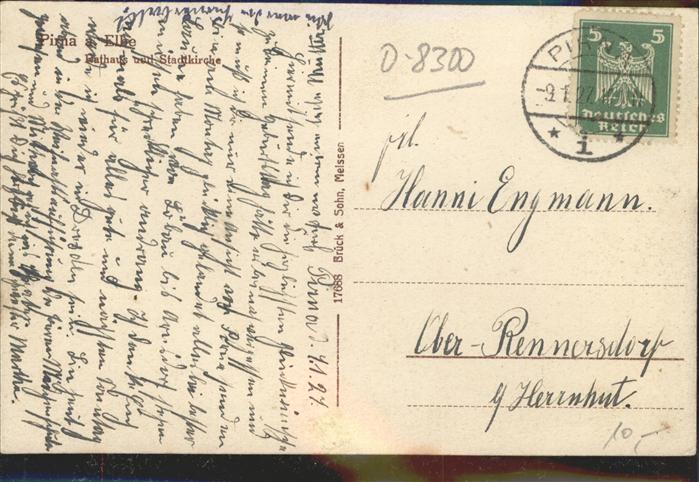 41331153 Pirna Elbe Sachsen Rathaus Stadtkirche postalisch gelaufen gute Erhaltung Alte Ansichtskarte Postkarte alte Postkarte hz_C Katcode 11110014287290