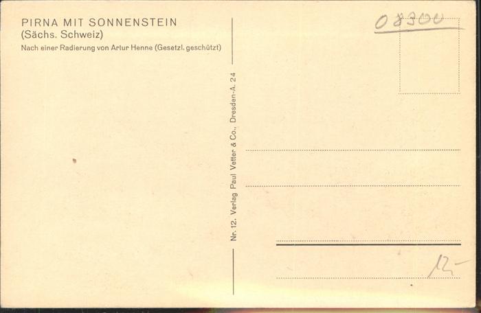 41331105 Pirna Elbe Sachsen Sonnenstein nach Radierung von Artur Henne postalisch nicht gelaufen gute Erhaltung Alte Ansichtskarte Postkarte hz_C Katcode 11110014287290