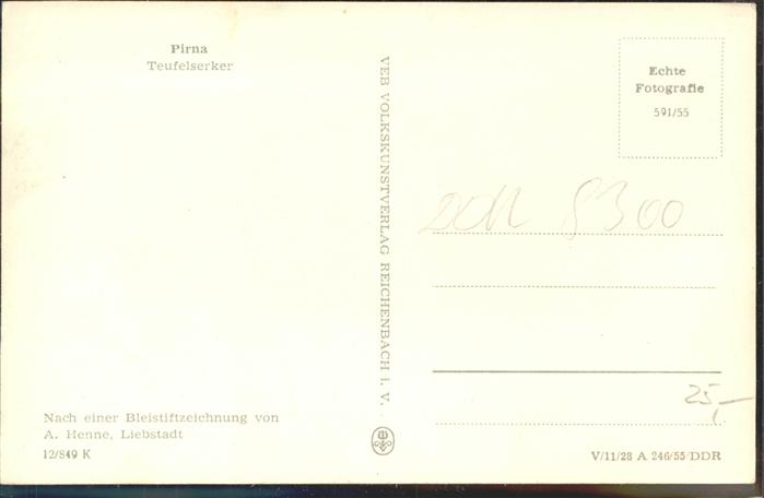 41331116 Pirna Elbe Sachsen Teufelserker Gasthaus Saechsische Schweiz postalisch nicht gelaufen gute Erhaltung Alte Ansichtskarte Postkarte hz_C Katcode 11110014287290