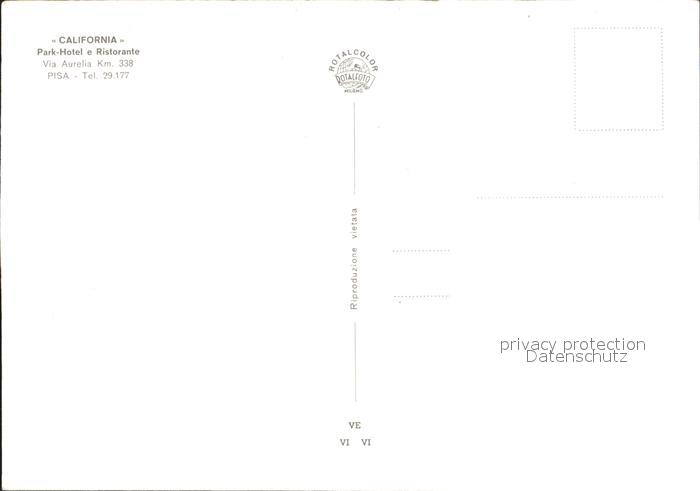 Pisa California Parkhotel e Ristorante postalisch nicht gelaufen Erhaltung siehe scans