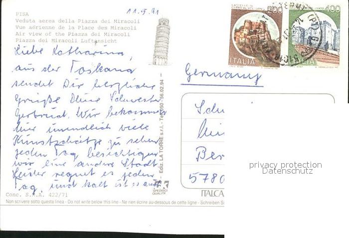 old postcard Pisa Piazza del Miracoli veduta aerea Domplatz Schiefe Turm postalisch gelaufen Erhaltung siehe scans