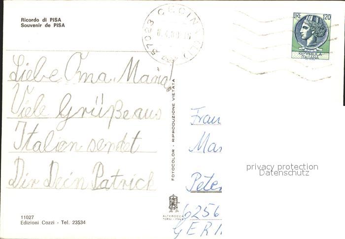 old postcard Pisa Schiefer Turm Dom Baptisterium postalisch gelaufen Erhaltung siehe scans