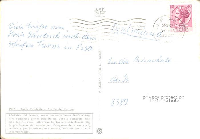 old postcard Pisa Torre Pendente Abside del Duomo postalisch gelaufen Erhaltung siehe scans