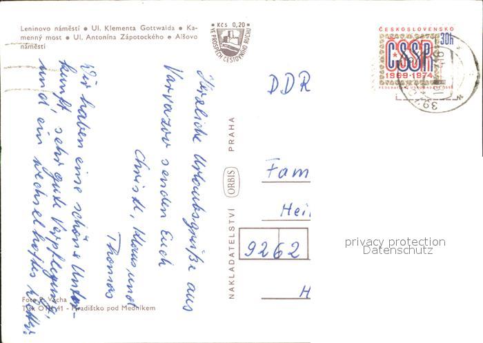 old postcard Pisek Tschechien Leninova Namesti postalisch gelaufen Erhaltung siehe scans