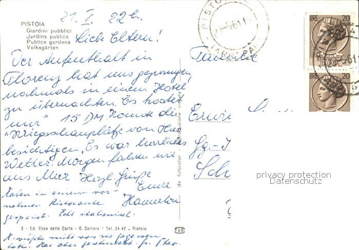 old postcard Pistoia Giardini pubblici postalisch gelaufen Erhaltung siehe scans