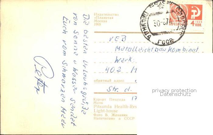 old postcard Pitsunda Pizunda Leuchtturm postalisch gelaufen Erhaltung siehe scans