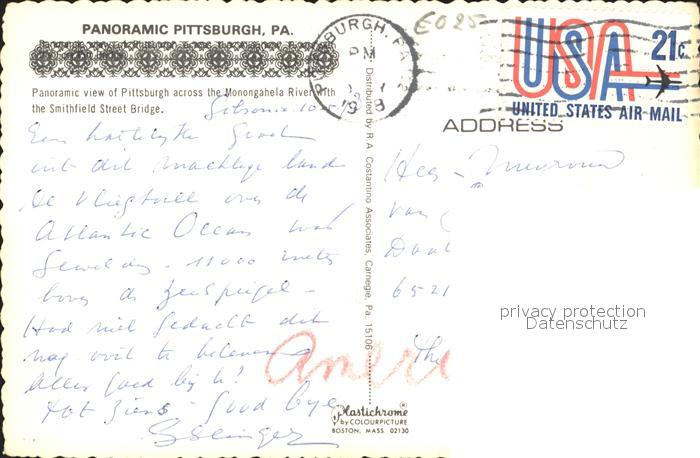 72290902 old postcard Pittsburg Pennsylvania Panorama postalisch gelaufen Erhaltung siehe scans KatCode: 14140