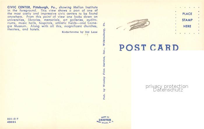 73333531 Pittsburgh Civic Center aerial view postalisch nicht gelaufen Erhaltung siehe scans [FriedD77] KatCode: 14140410000000