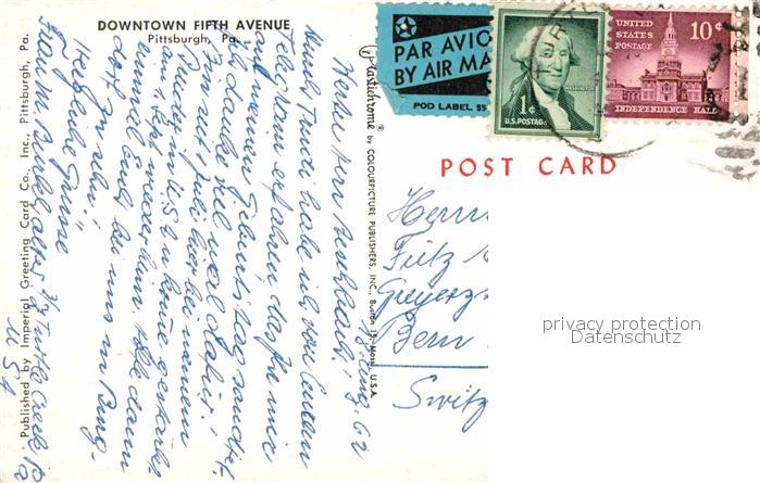 72747983 old postcard Pittsburgh Downtown Fifth Avenue postalisch gelaufen Erhaltung siehe scans [FriedD77] KatCode: 14140410000000