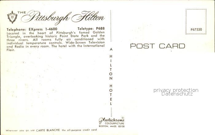 71859329 Pittsburgh Hilton Hotel postalisch nicht gelaufen Erhaltung siehe scans KatCode: 14140410000000