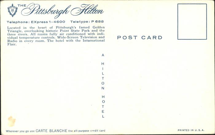 11111781 Pittsburgh Hilton postalisch nicht gelaufen KatCode: 14140410000000